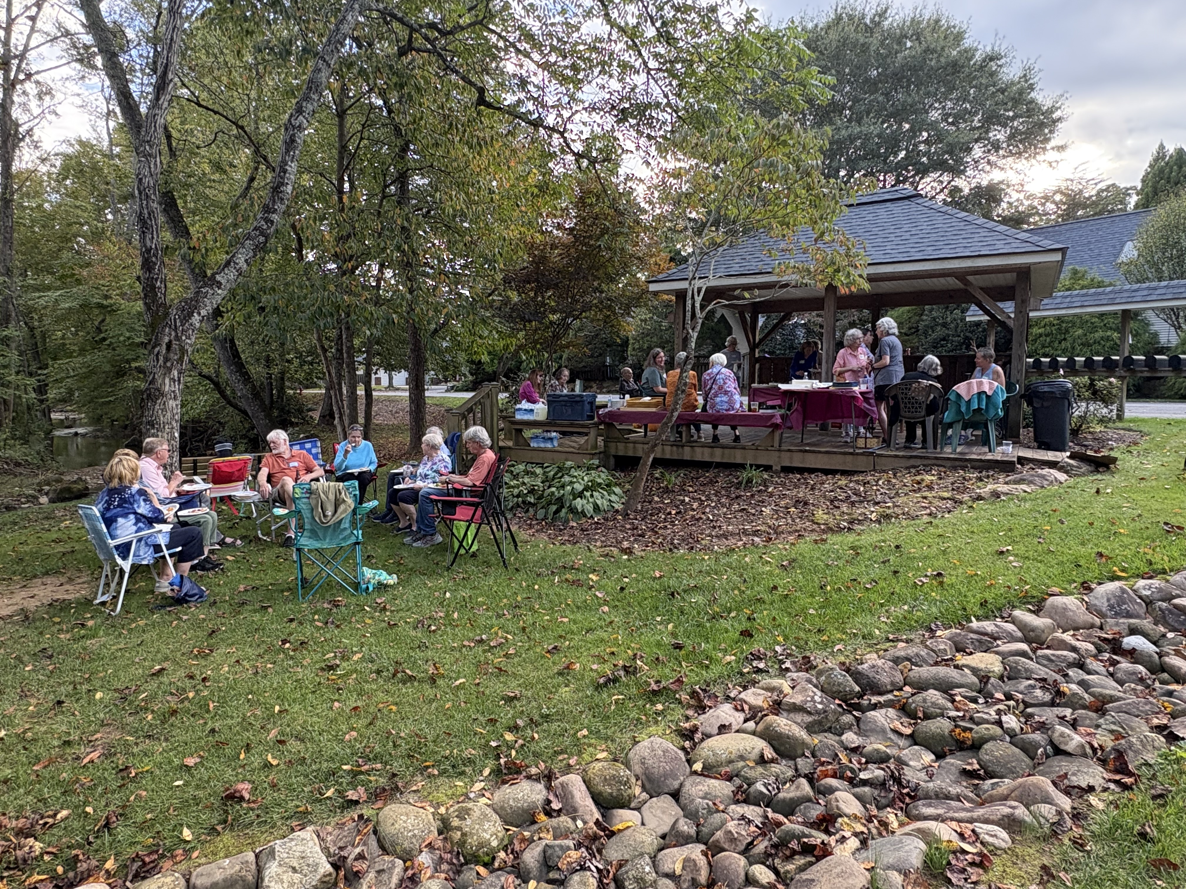 This afternoon our little neighborhood gathered for our annual fall picnic under a gazebo that required repairs following Helene. We expressed our gratitude for the larger community, YOU, who answered my calls for help and supplies in those immediate weeks. We were reminded of the horrific coffee Johnny attempted to make until you sent French Presses. We remembered the crazy meals we ate when we had to cook the last of the safe perishables in our refrigerators. We remembered the farm fresh unwashed eggs you supplied which needed no refrigeration and provided protein rich foods for us for weeks. We also learned how to take each others leftovers home instead of taking our own uneaten food home. After we ate, each of us filled our to go boxes with full meals for those unable to come as well as each other.